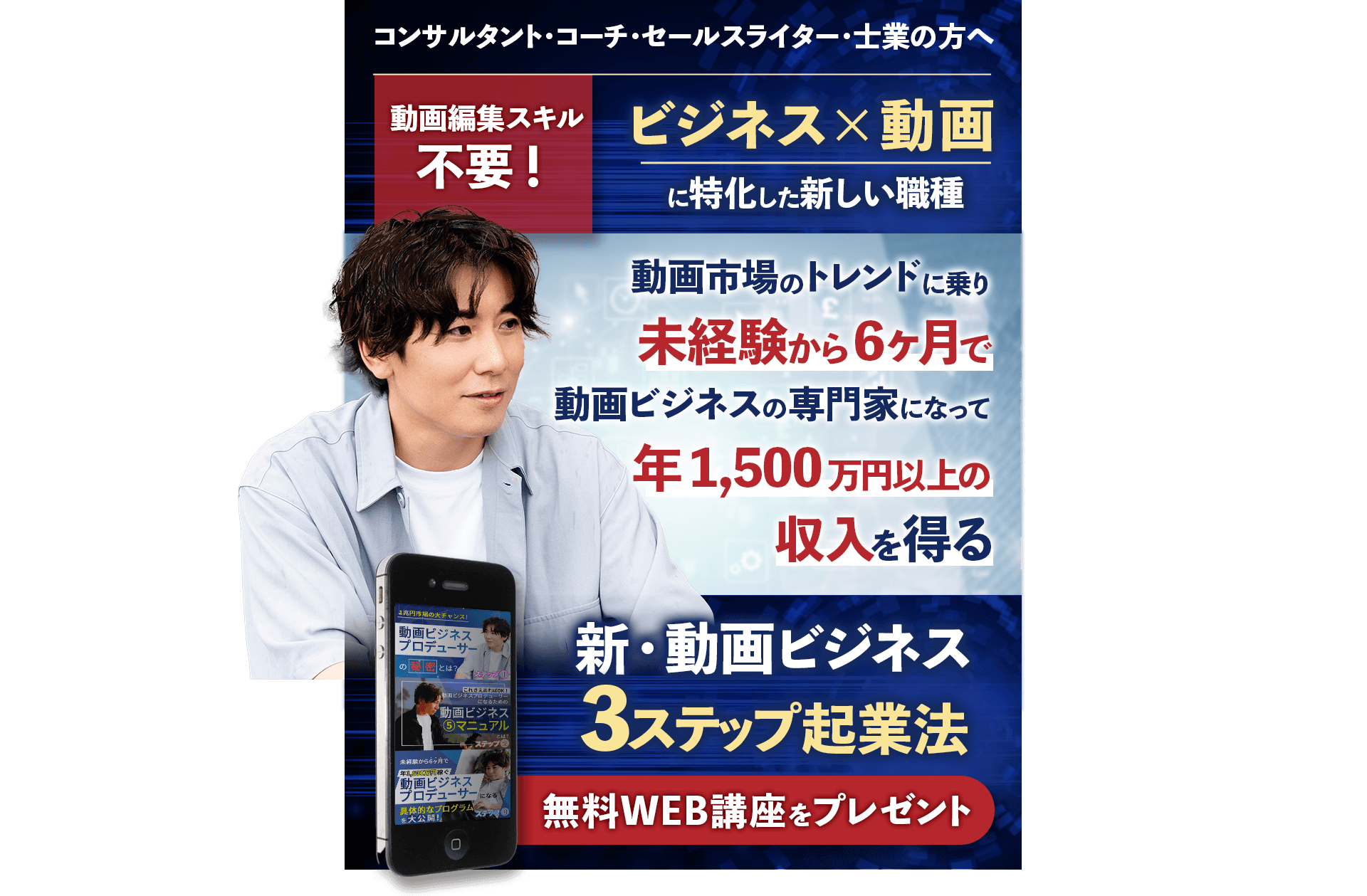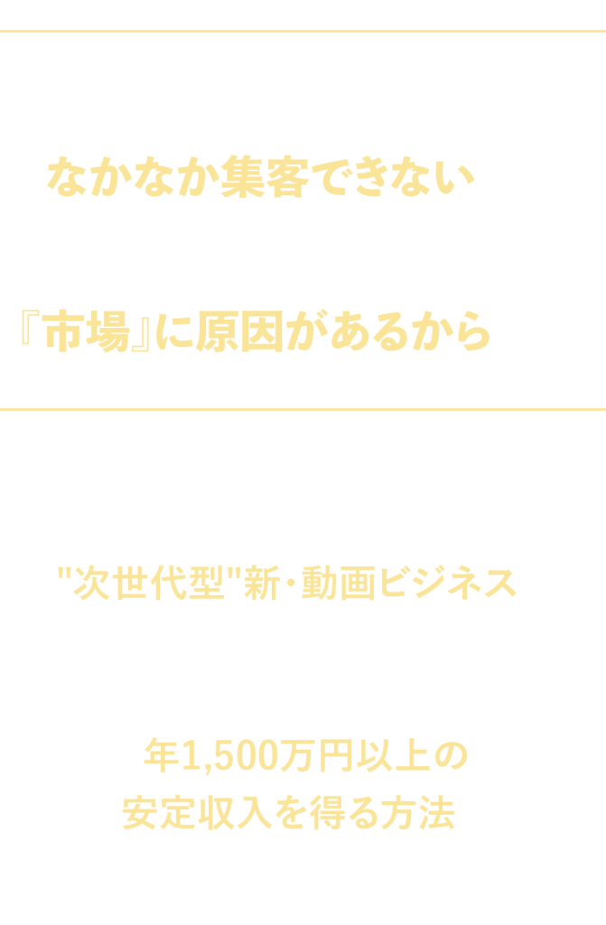 2019年にこれから市場が伸びる『動画』を学び、”動画の専門家”として動画を武器にした途端、月に100万円を突破し、1年目で年2,000万円を達成。
